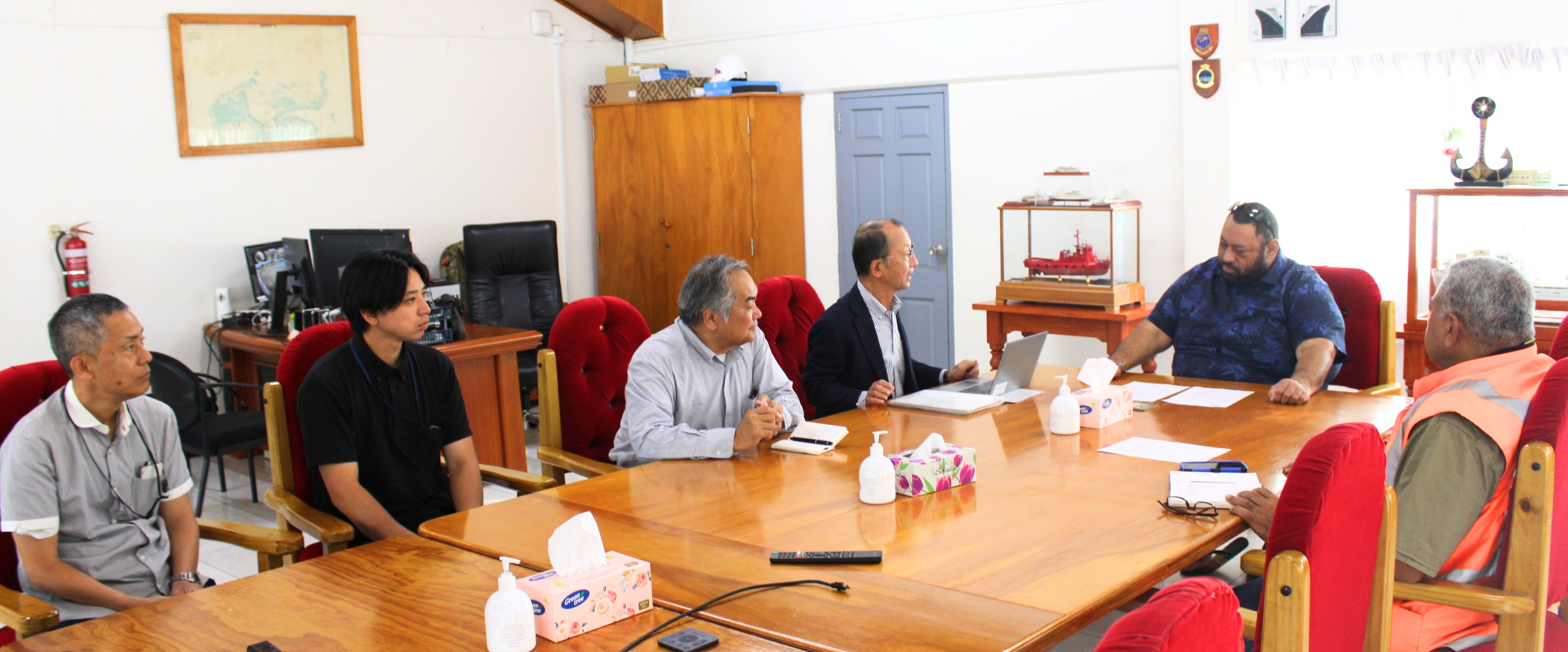 A formal sign-off ceremony was held this morning at the PAT Head Office in Nuku’alofa. In attendance were the CEO of Ports Authority Tonga, Mr. ʻAlo ki hakau Maileseni; General Manager – Marine Services & Port Master, Captain Hakaumotu Fakapelea; the Japanese technical team; and senior members of PAT.