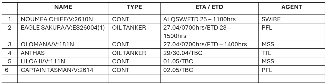 Written by Super User on 24 April 2026. Posted in Latest Intl. Ferries Arrive Schedules for Weeks 20 and 21.